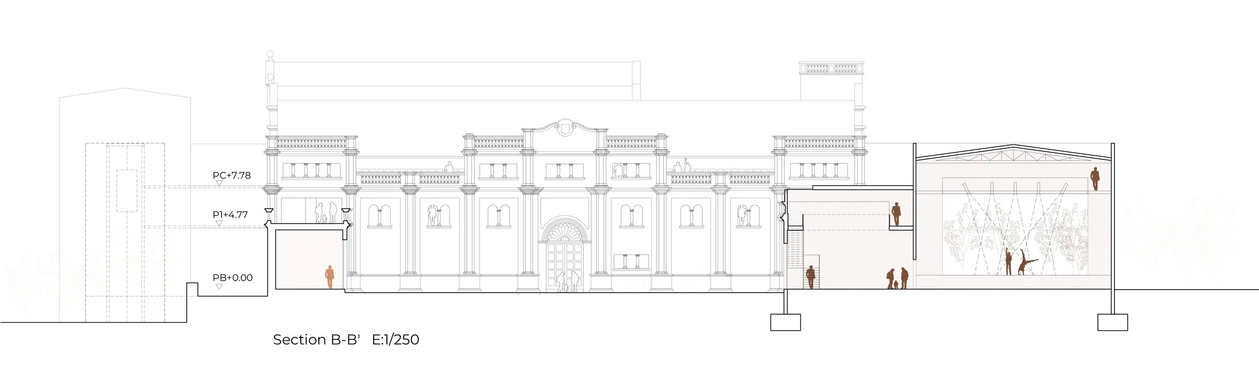 Arquitectònicament, el propi edifici existent ens parla, i nosaltres amb aquest projecte pretenem escoltar-lo. L’arquitectura construïda en aquest projecte pretén dialogar constantment amb l’arquitectura existent. Per això el programa de l’edifici no s’imposa, sinó que s’adapta a la fàbrica ja existent. El programa s’adapta als espais ja existents, potenciant-los, potenciant el seu ús i posant-los en valor, a través d’una intervenció pertinent, coherent i conscient amb allò ja construït.